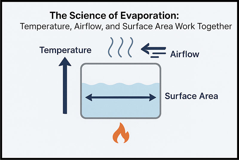The Science of Evaporation: How Temperature, Airflow, and Surface Area Work Together